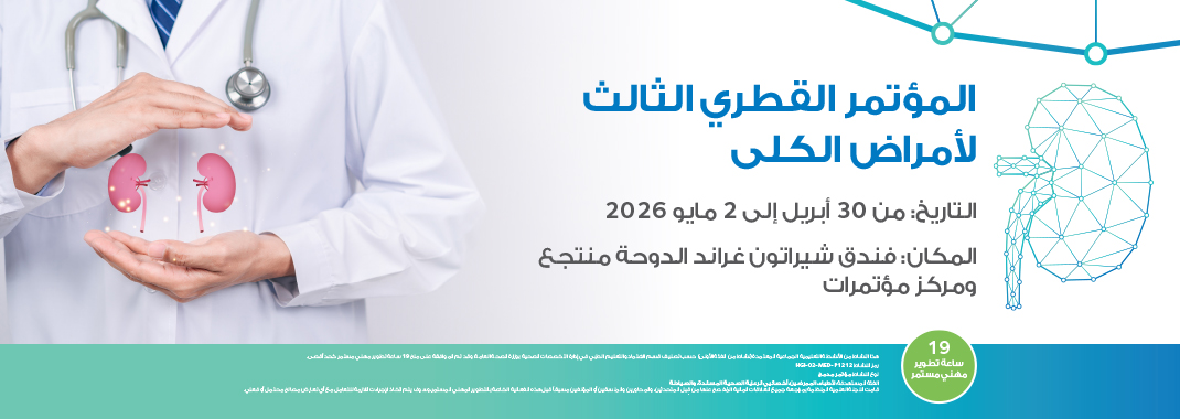 نيابةً عن اللجنة المنظمة، يسعدنا أن نرحب بكم في مؤتمر قطر الثالث لأمراض الكلى، والذي سيُعقد في الدوحة خلال الفترة من 30 أبريل إلى 2 مايو 2026.