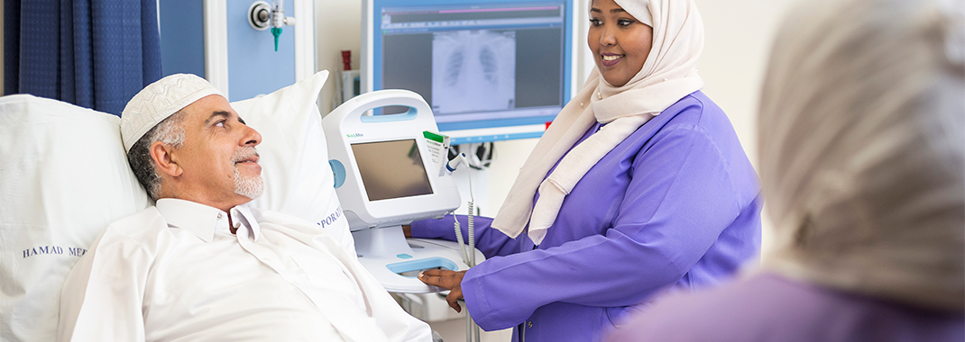 HMC provides specialist cardiac care to Qatar’s population, mainly through its flagship cardiac facility the Heart Hospital. Using recognised international best practices, specialist expertise, cutting-edge technology and a multidisciplinary approach, HMC continues to improve patient outcomes and establish itself as a leader in cardiovascular medicine in the region. Cardiology services are also integrated across many of HMC’s other hospitals and facilities, as well as receiving external referrals.