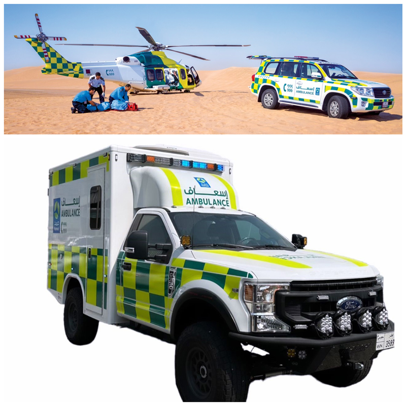 Ambulance coverage in Sealine area is available 24/7. Two regular ambulances are permanently stationed in the area, along with two four-wheel-drive ambulances to transport patients from sand dunes to the Sealine clinic during its operating hours, the standard ambulance site, or the air ambulance landing area, as needed.